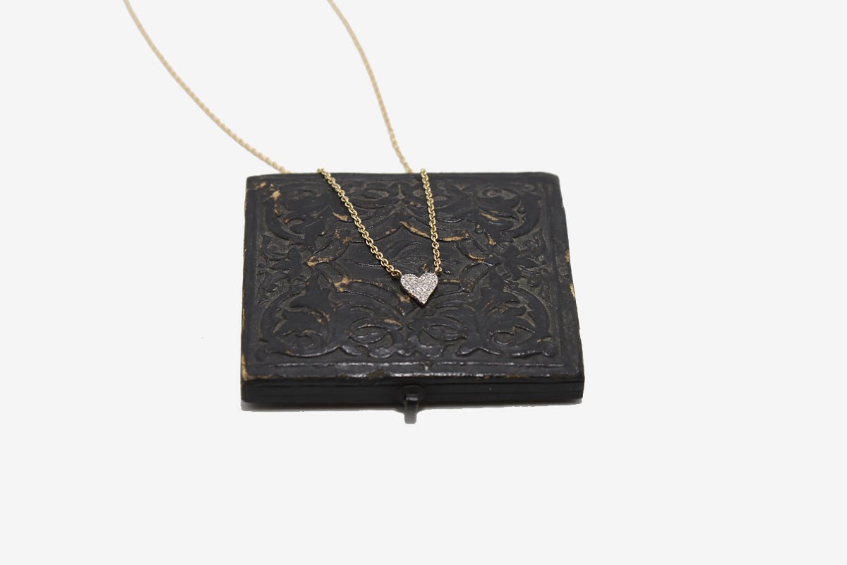 14k Gold Pave Diamond Heart Necklace