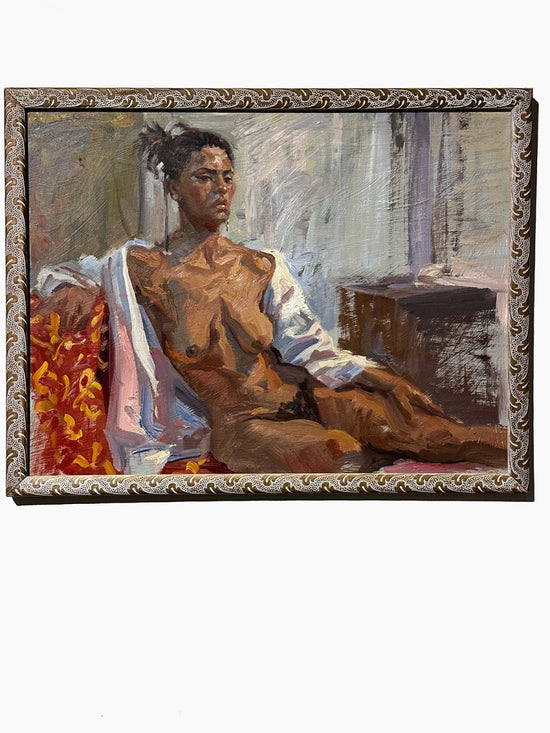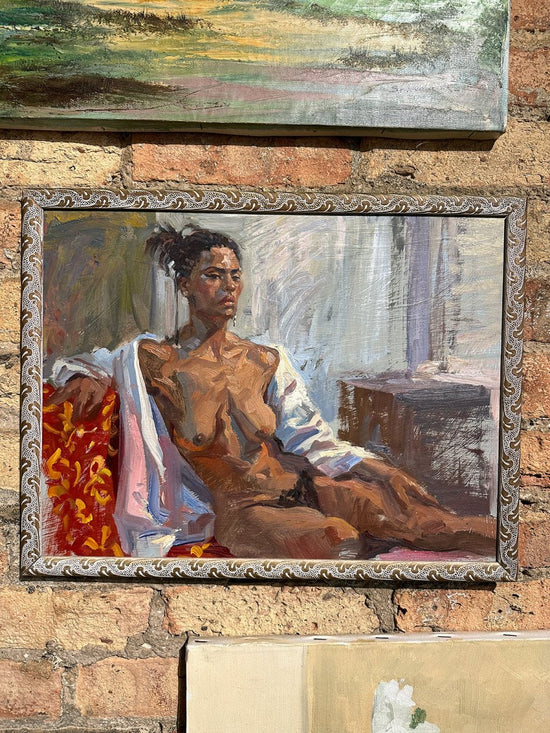 9k Gold Labradorite & Emerald Trillion Drop Earrings