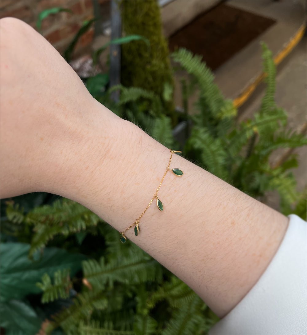 9k Gold Labradorite & Emerald Trillion Drop Earrings