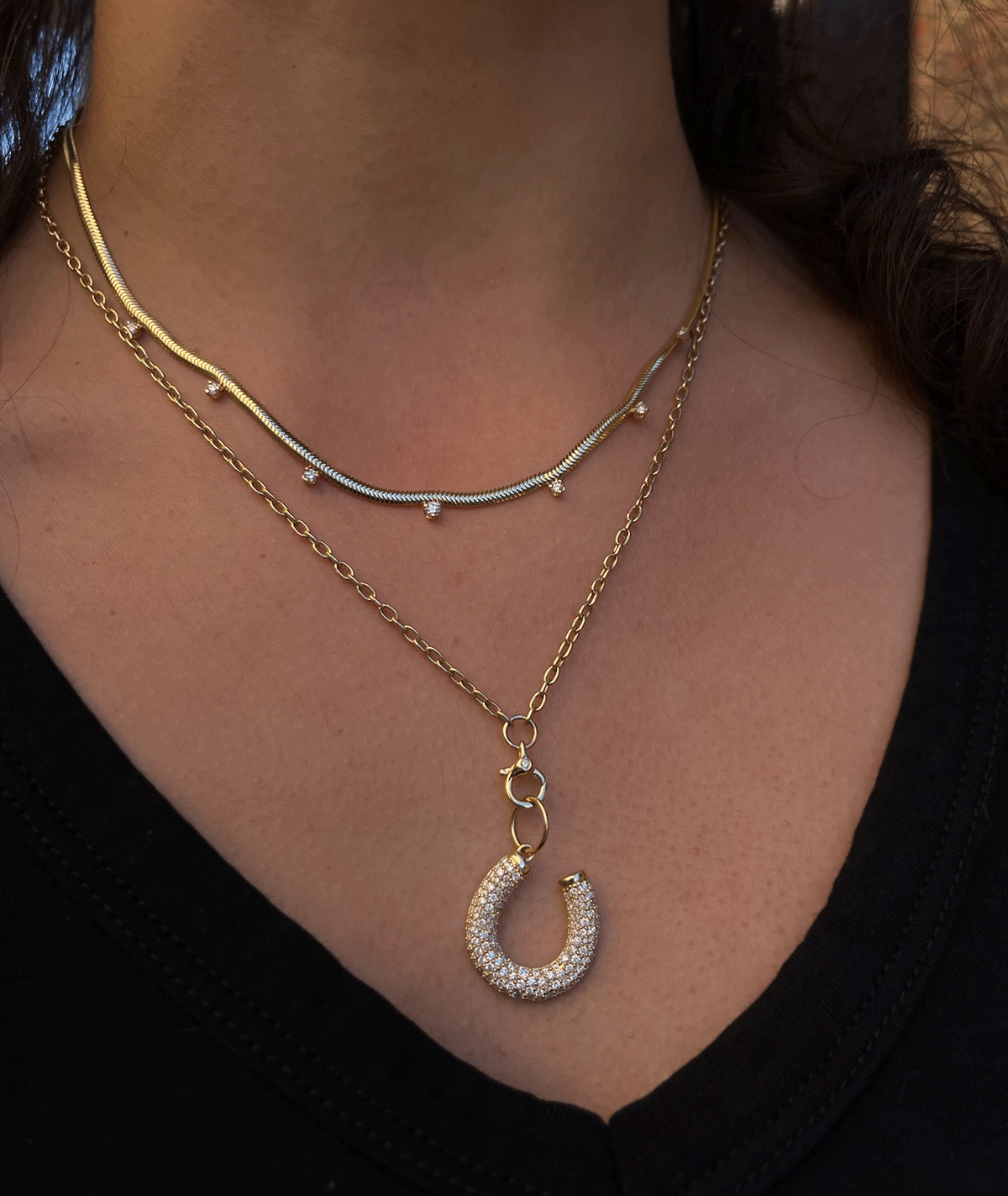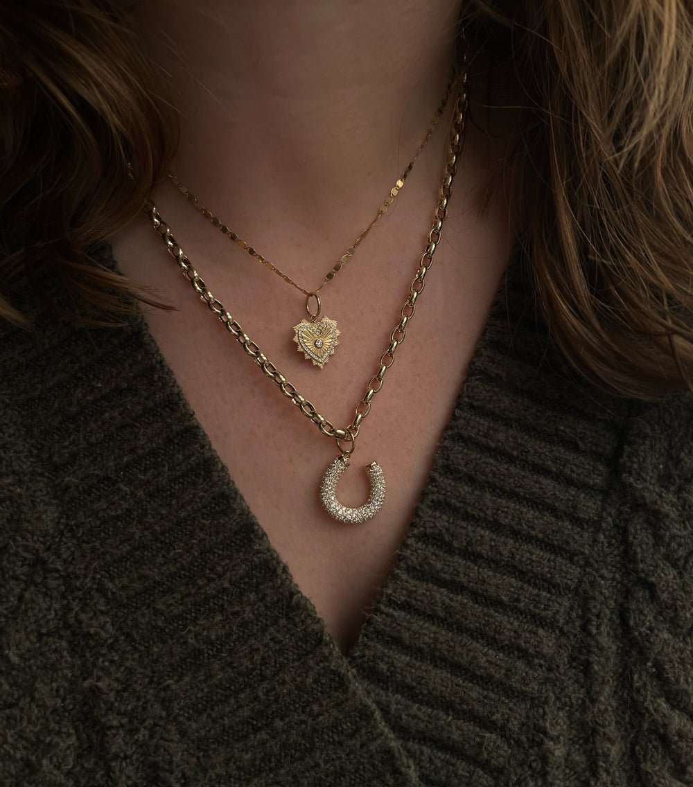 14k Gold Diamond Horseshoe Pendant