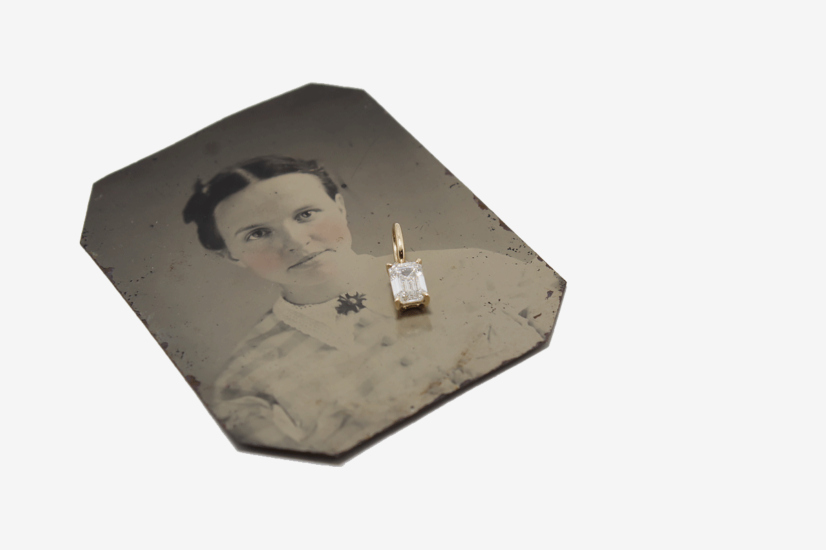 Add 14k Gold Emerald Cut Diamond Charm to the cart