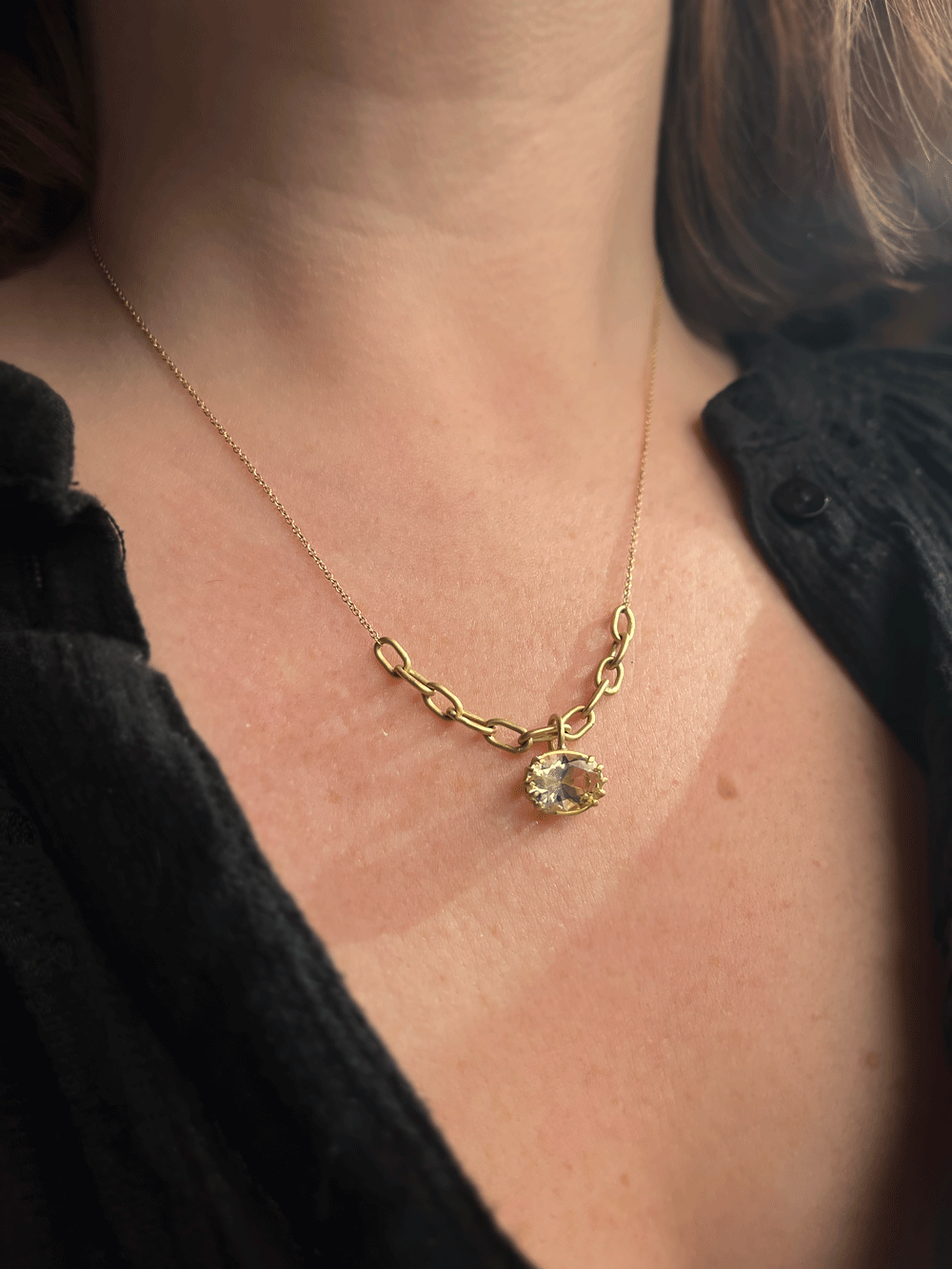 14k Gold Citrine + Diamond Necklace
