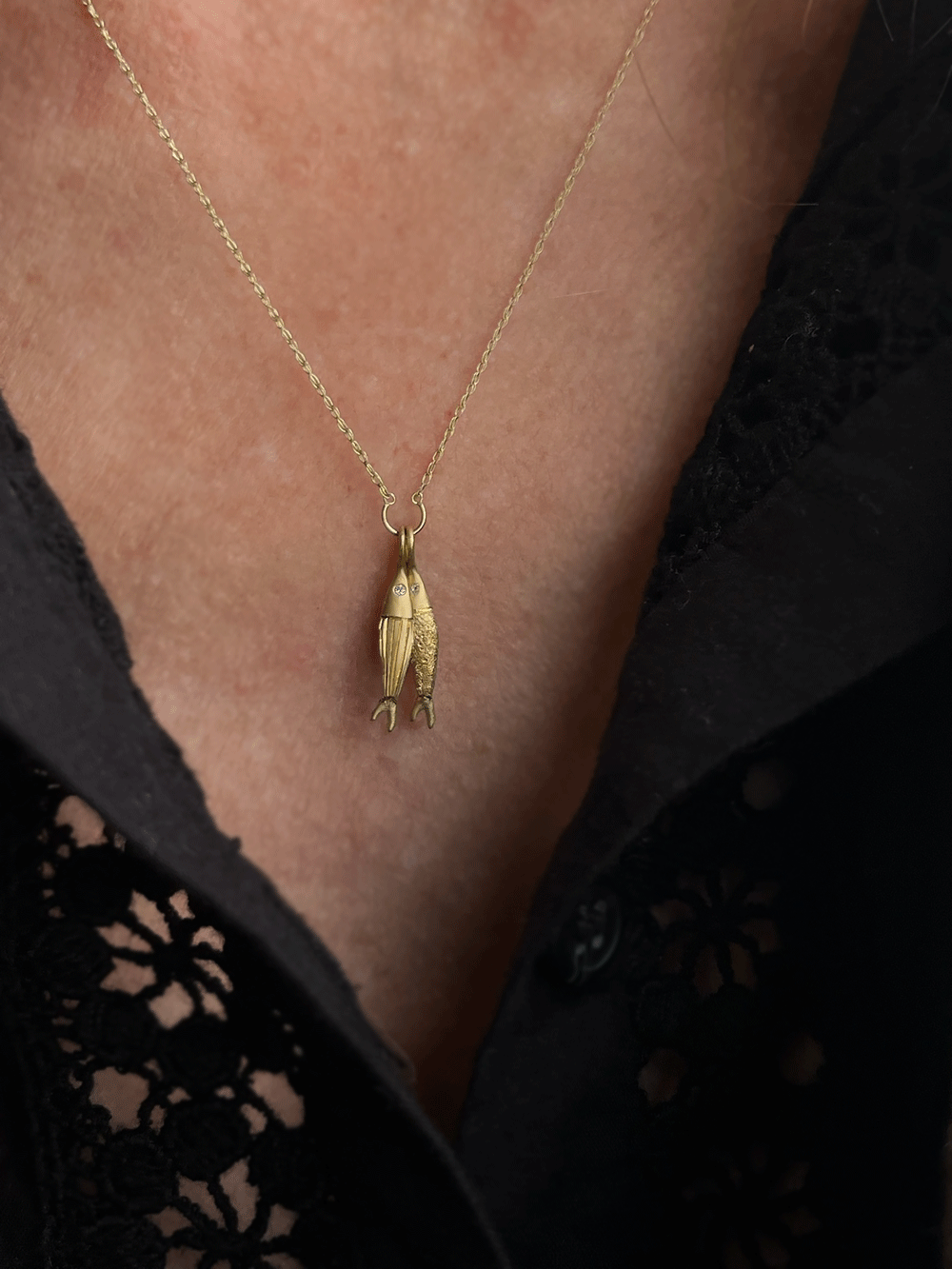 18k Gold Engraved Pesce Pendant
