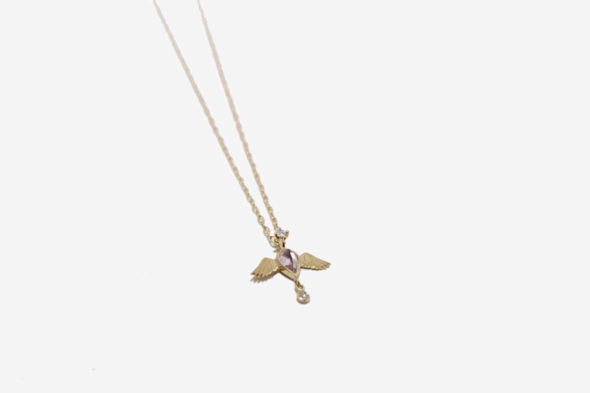 9k Gold Pink Tourmaline & Diamond Trillion Drop Earrings
