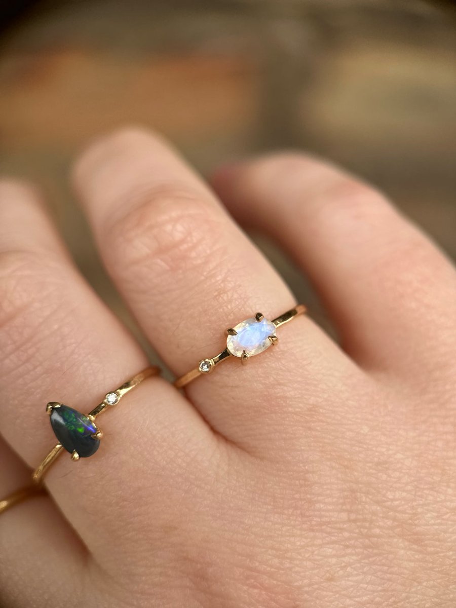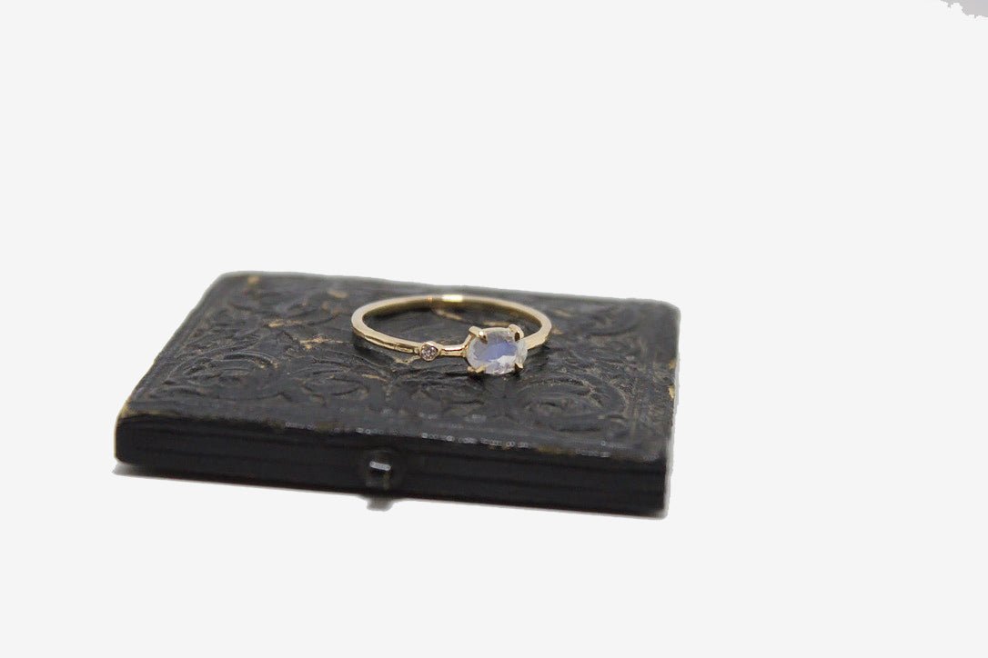 Celine Daoust 14k Gold Grey Diamond + Moonstone + Diamond Ring