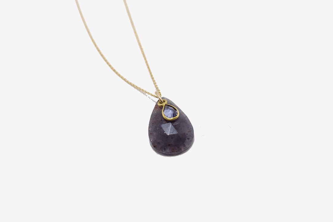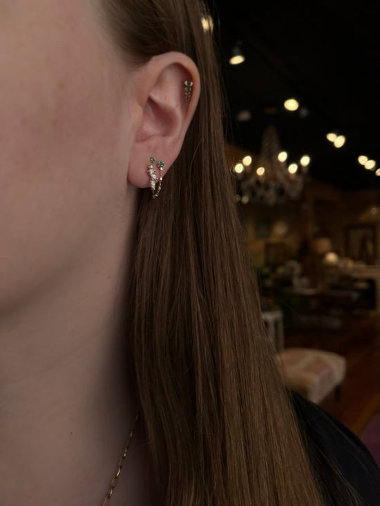 9k Gold Labradorite & Emerald Trillion Drop Earrings