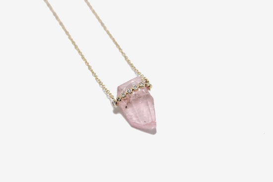 9k Gold Pink Tourmaline & Diamond Trillion Drop Earrings
