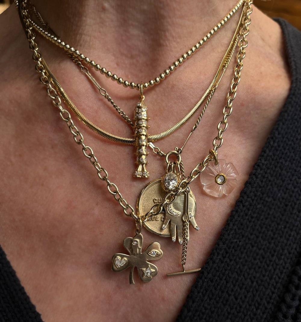 14k Gold Diamond Charm + Beaded Turquoise Necklace