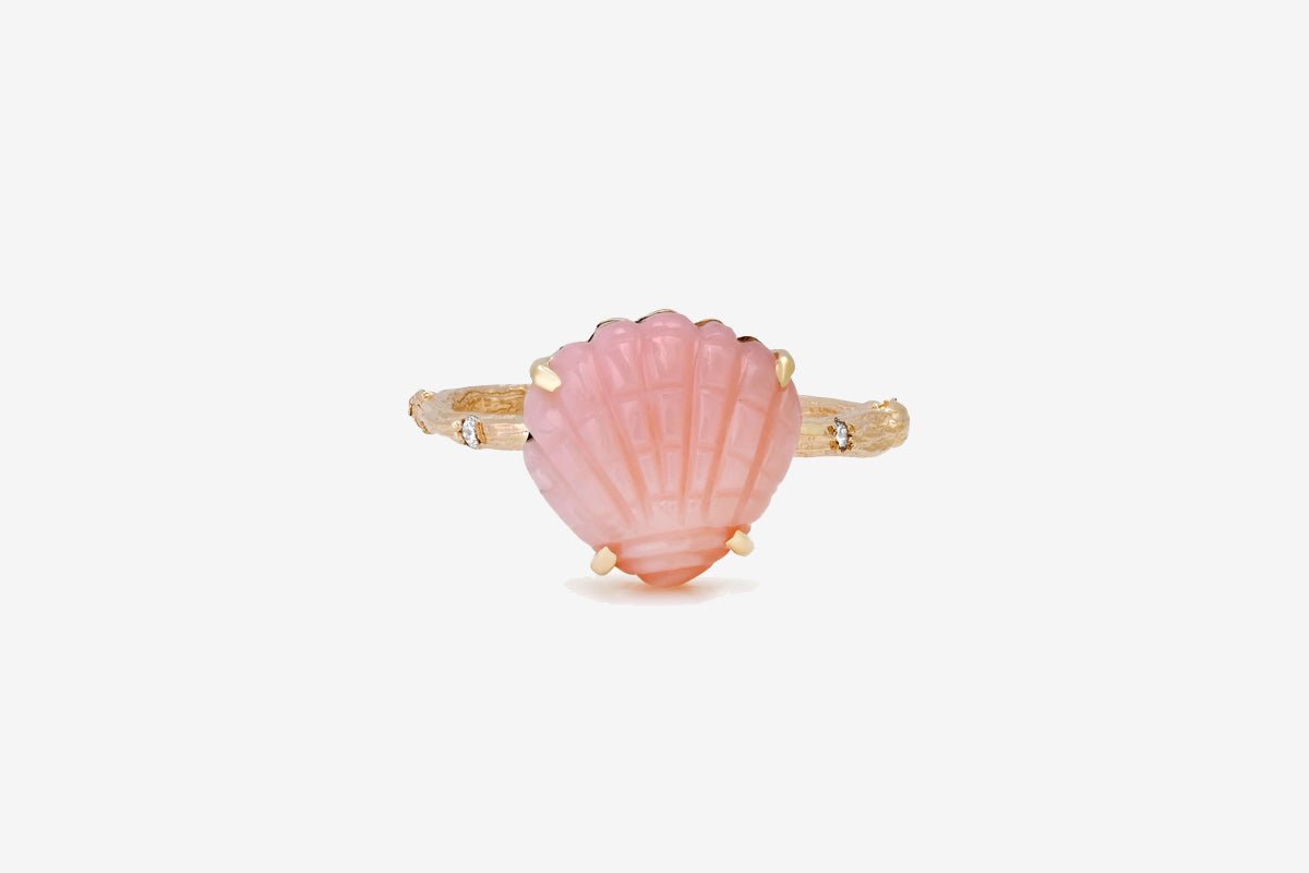 14k Gold Pink Opal Shell Ring