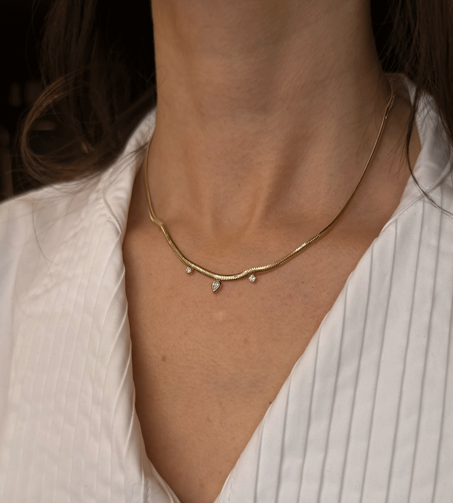 14k Gold Emerald Cut Diamond Ball Chain Necklace