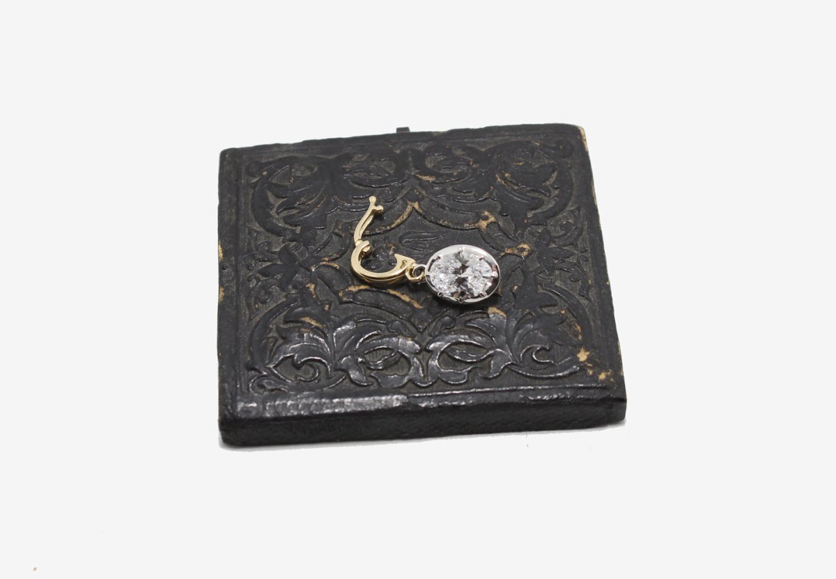 A lab grown diamond charm set in gold with a "clip on" style bail.