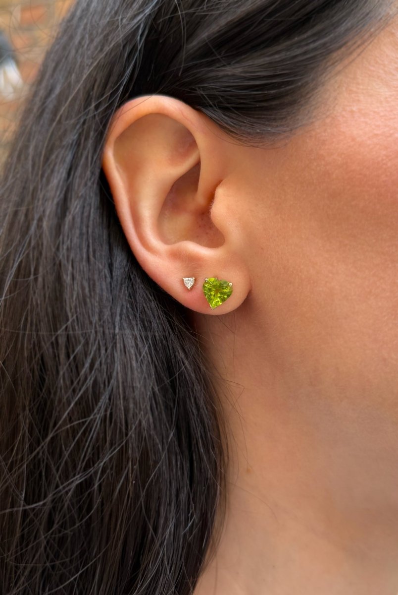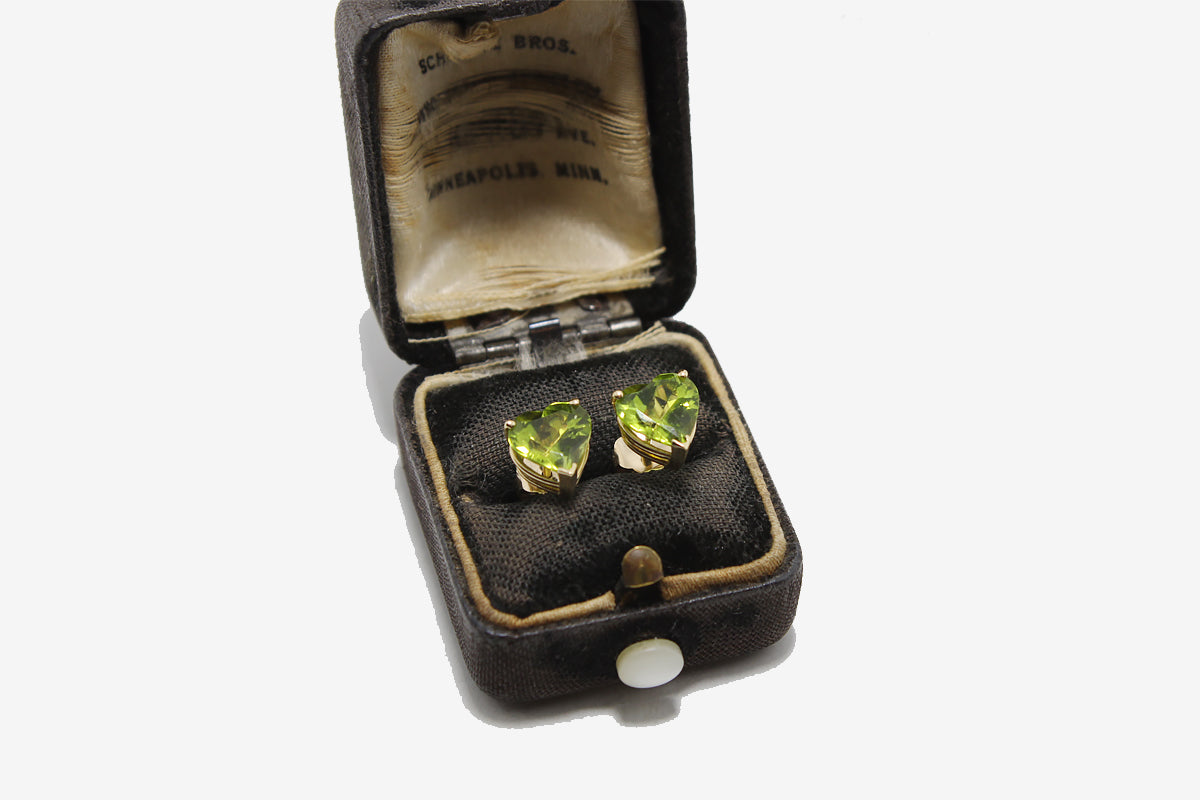 Heart shaped peridot stud earrings.