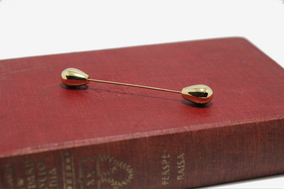 Inspired by the delicate beauty of a dew drop poised on a leaf at dawn, the Drop Line Pin by PLOW captures a fleeting moment in nature, transformed into a timeless accessory. Crafted from a base of brass, this elegant pin features dual droplet-shaped ends that reflect light with subtle brilliance. Its minimalist design offers versatility, making it perfect for securing scarves, shawls, or adding a refined touch to jackets and coats.