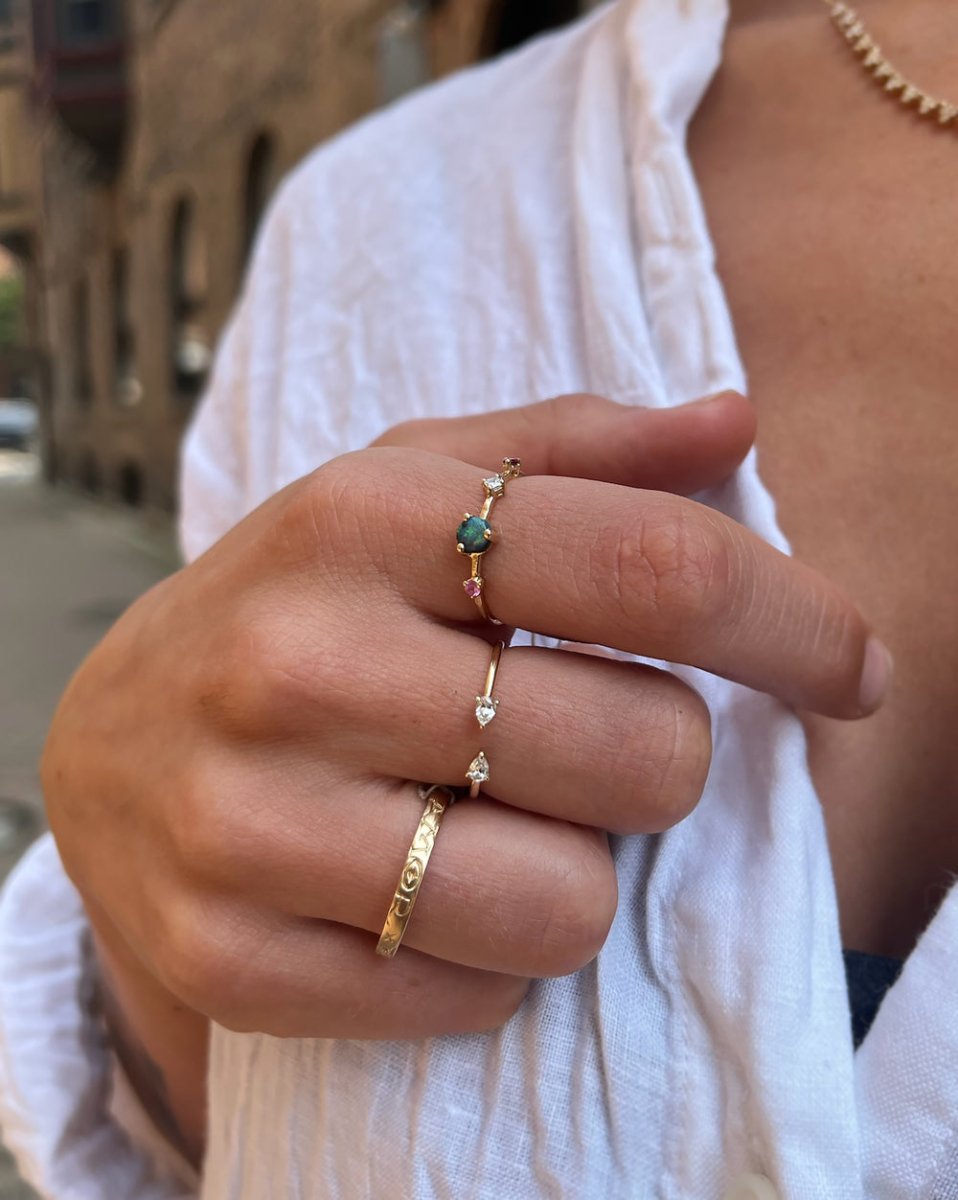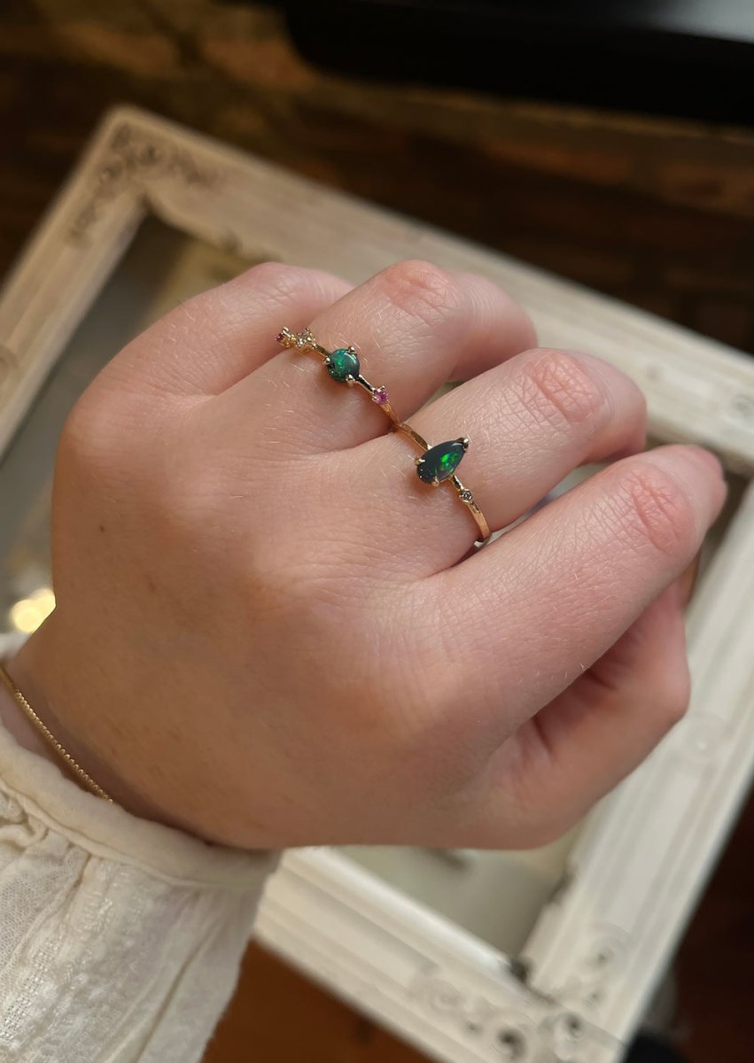 14k Gold Opal + Sapphire + Diamond Dot Dash Ring