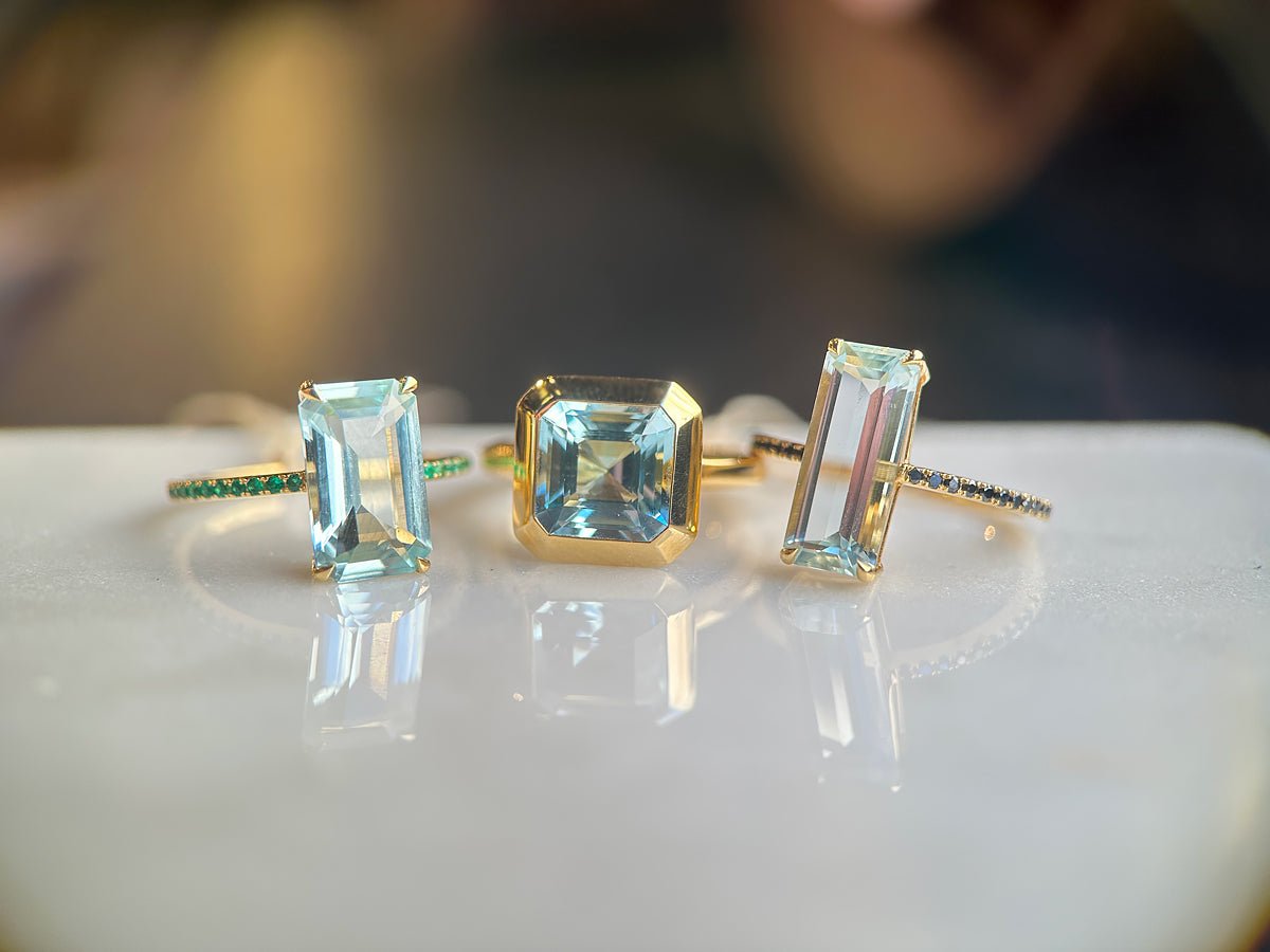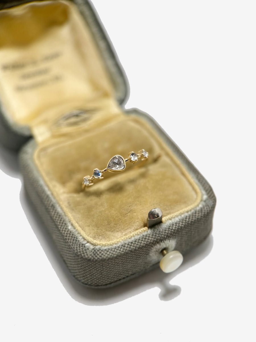 Celine Daoust 14k Gold Grey Diamond + Moonstone + Diamond Ring