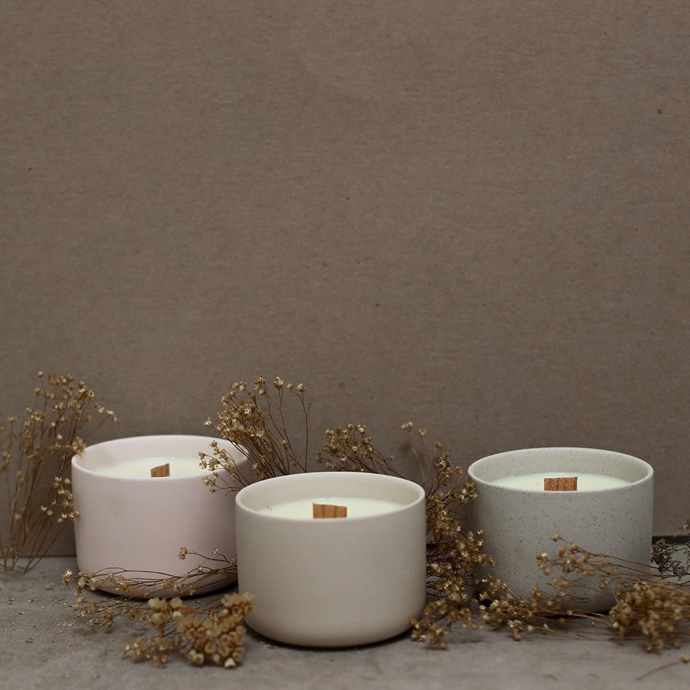 simple + clean, this natural beeswax candle emits the slightest scent of honey. The wooden wick crackles as it burns.