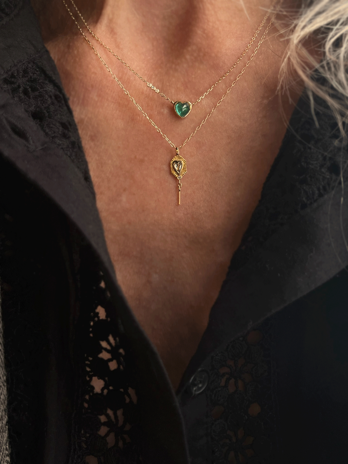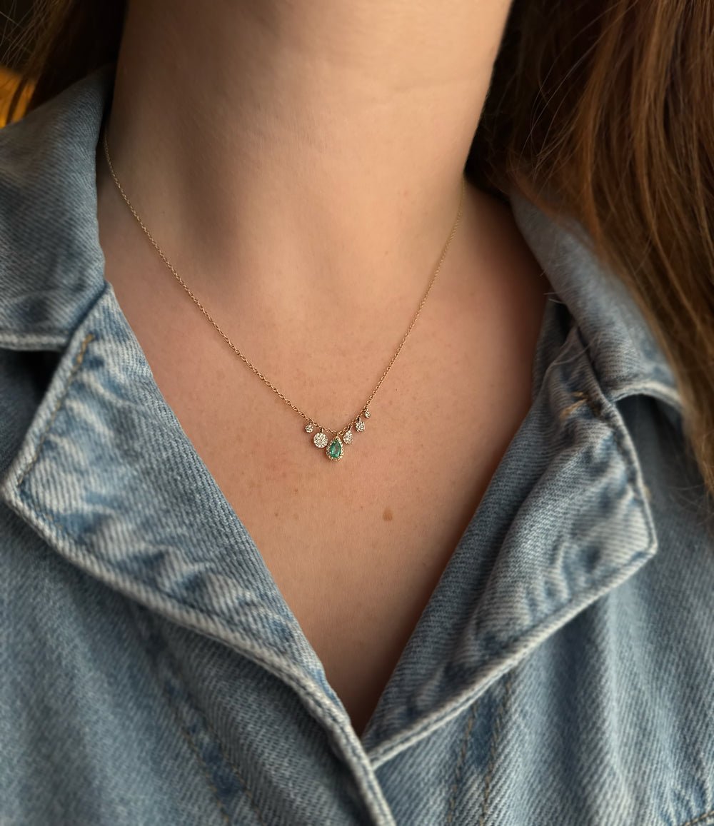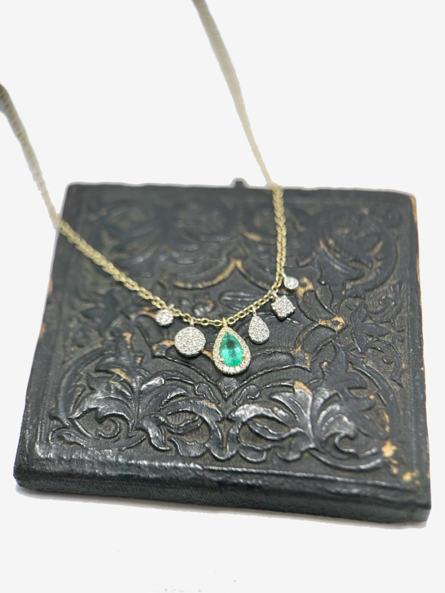 9k Gold Labradorite & Emerald Trillion Drop Earrings