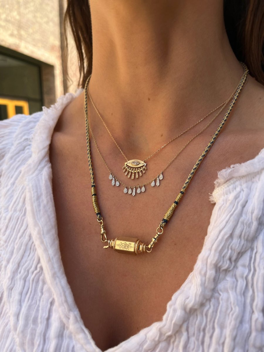24k Gold + Oxidized Silver Enamel Cross Pendant