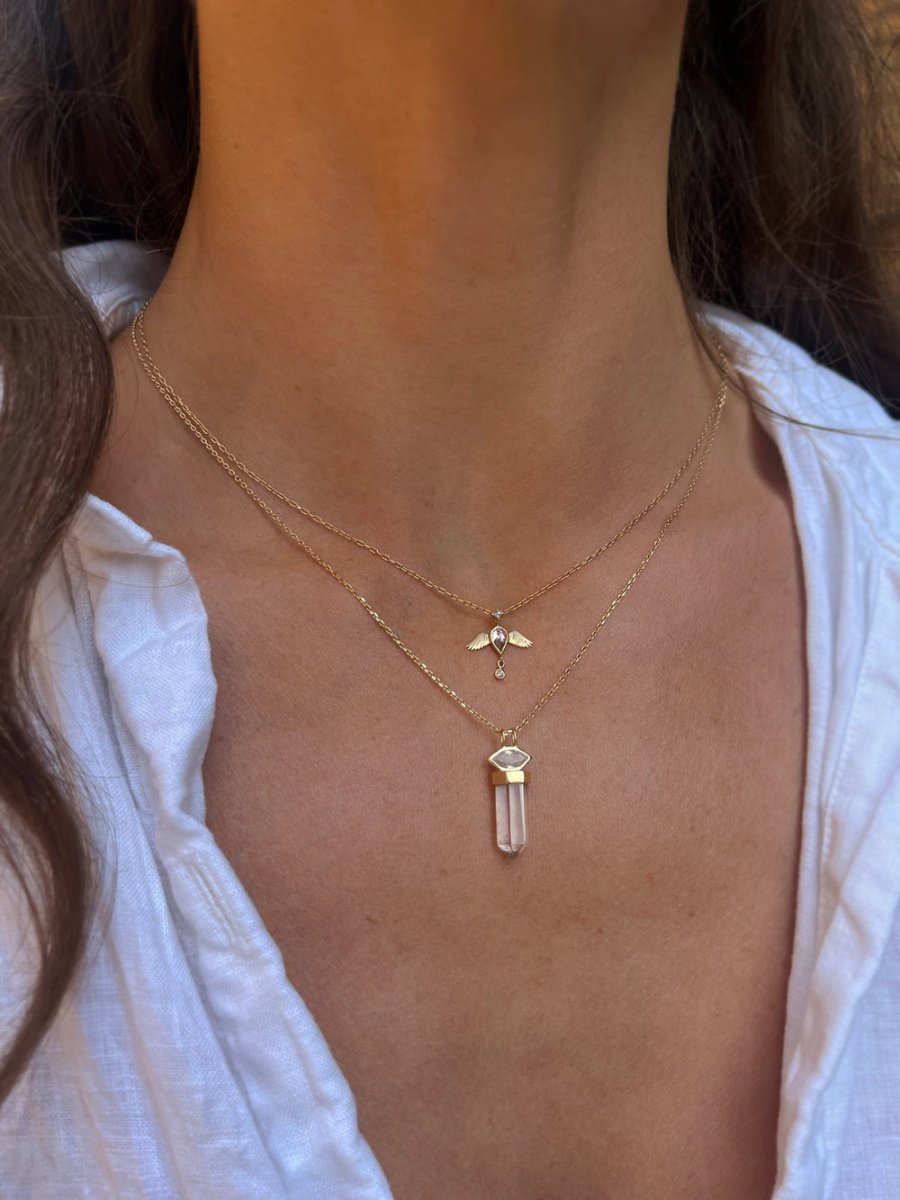 14k Gold Moonstone + Rough Pencil Quartz Necklace