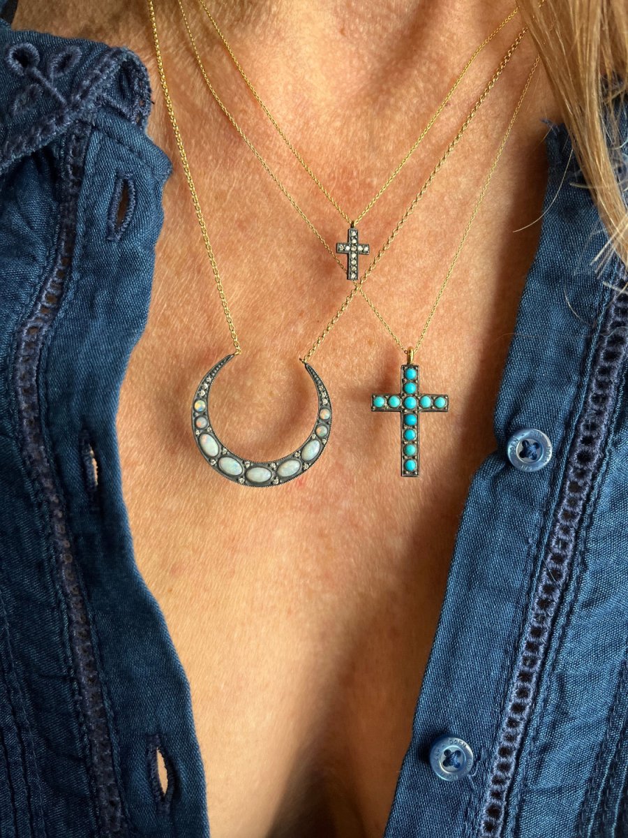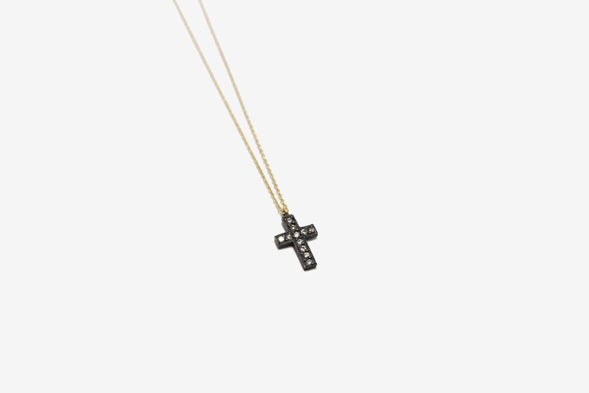 18k Gold + Oxidized Silver Small Diamond Cross Necklace