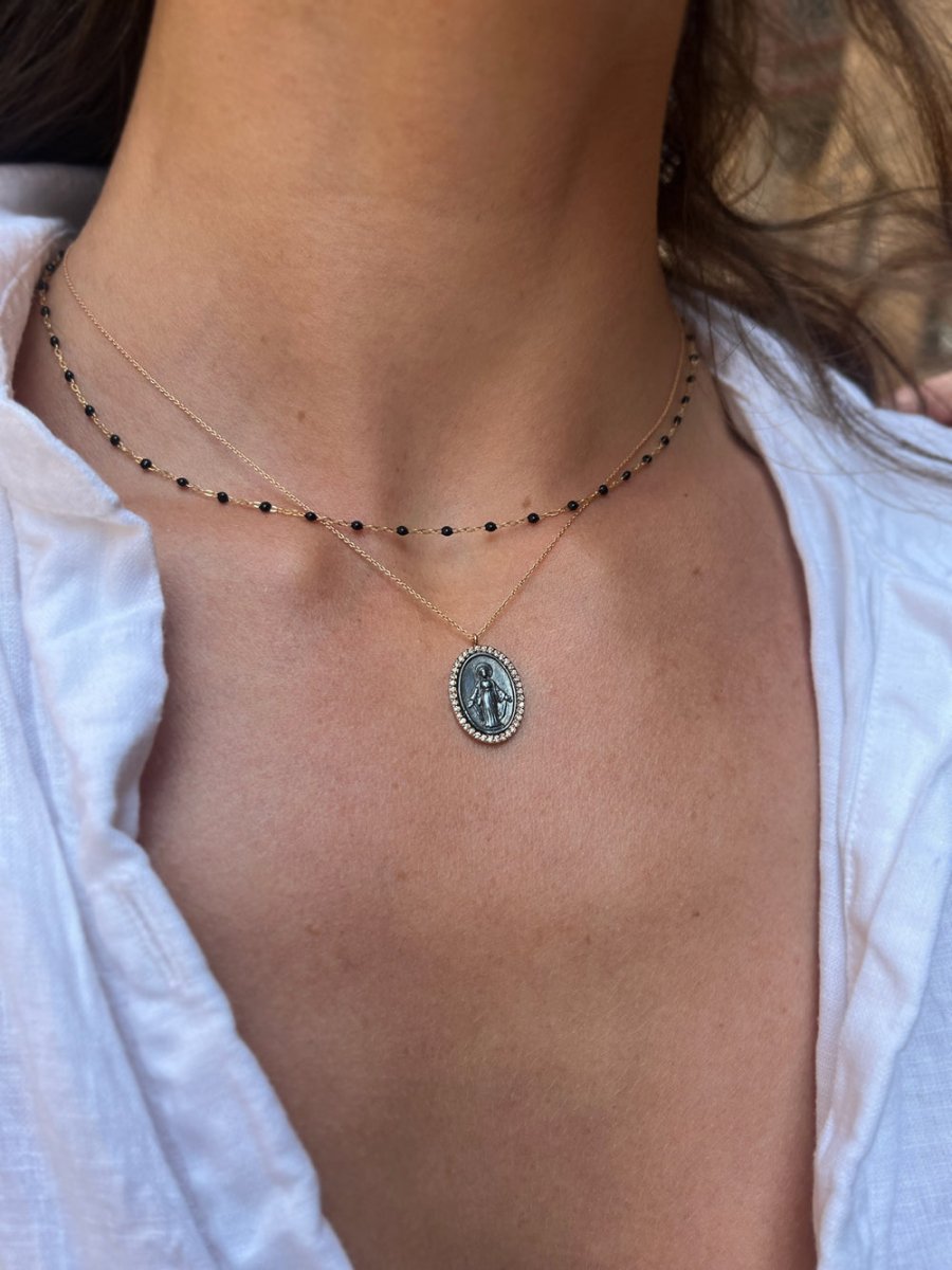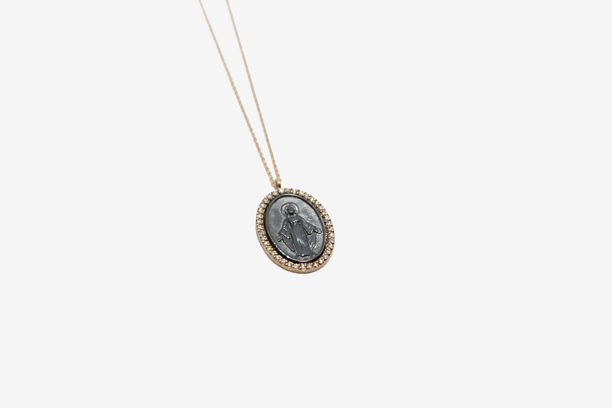 18k Rose Gold & Oxidized Silver Miraculous Medal Necklace
